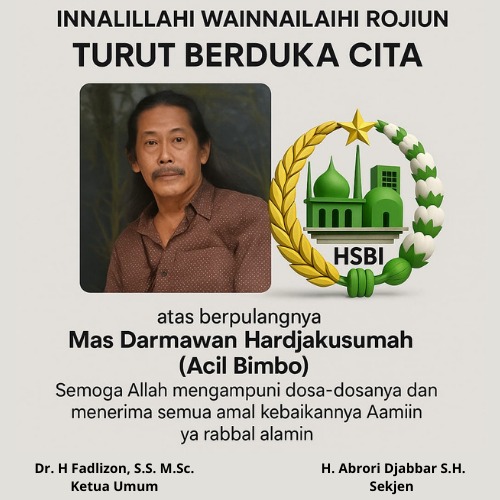 Innalillahi Wainnailaihi Rojiun, Turut Berduka CitaHSBISeptember 2, 2025November 9, 2025Berita187 Views Post Views: 187 Don't MissSelamat Hari Raya Idul Fitri 1447 H Mohon maaf lahir dan batin.Ketua Umum HSBI Fadli Zon Peroleh Gelar Profesor Kehormatan dari Universitas NasionalPeluncuran Buku Antologi Puisi di TIM: Sajikan Diskusi Sastra & Pertunjukan SeniFadli Zon Terima Bintang Mahaputera Utama, Diakui Berjasa dalam Budaya dan PolitikFestival Budaya Masjid Pantai Bali 2025: Merajut Budaya, Menguatkan Iman, Menyapa Dunia dari JembranaHSBI Siapkan Festival Sastra Islam se-Dunia, di Jakarta